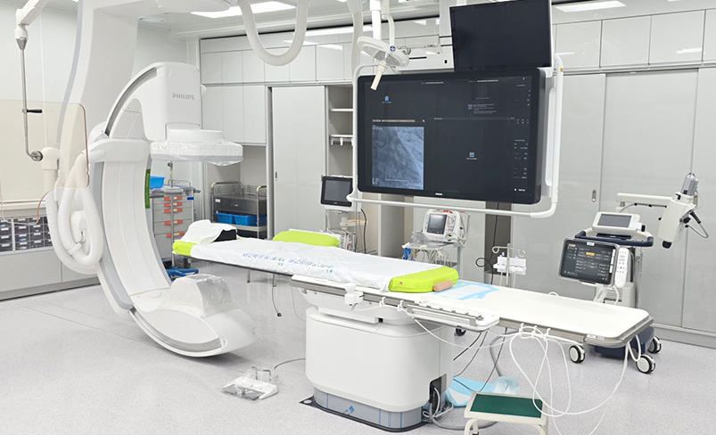 본원에서 사용하는 필립스의 최근 혈관조영진단기기 Azurion 5 M20은 두부, 흉부, 복부, 사지 혈관 등 인체 내의 모든 혈관의 이상 유무를 조영 진단하고, 더 나아가 혈관을 시술하여 치료하는데 쓰이는 초정밀 최첨단 장비입니다.