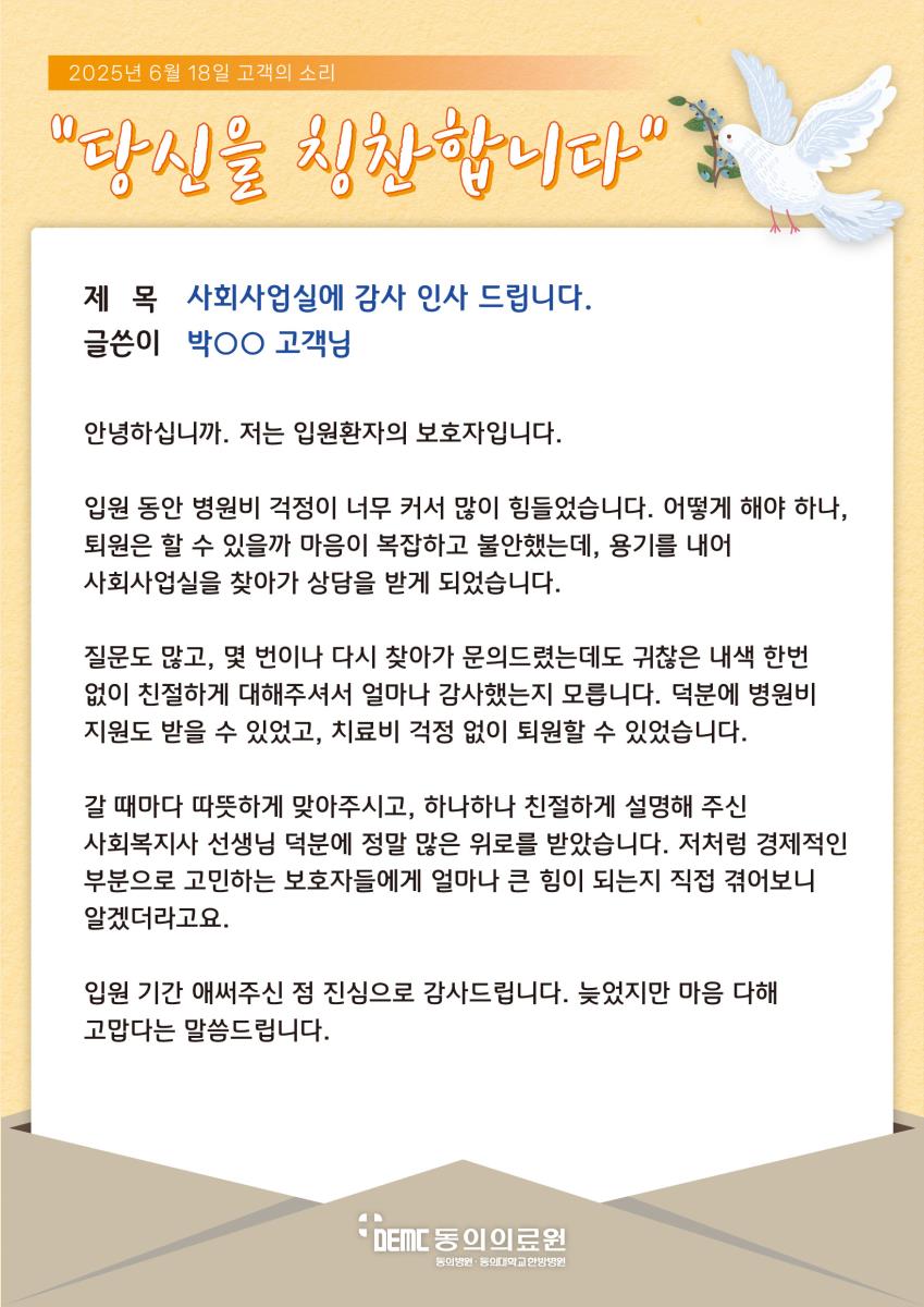 사회사업실에 감사 인사 드립니다.