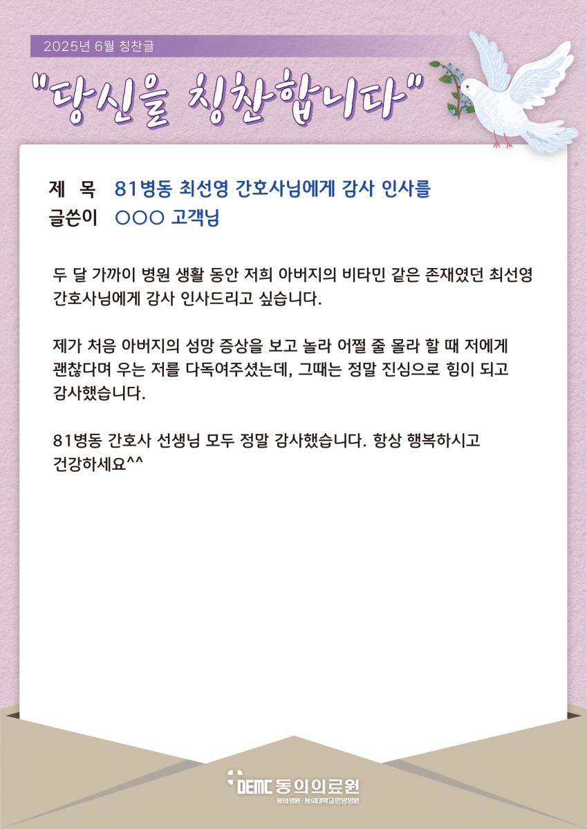 ※ 고객님의 치료후기 작성은 고객의 소리 메뉴에서 가능합니다.