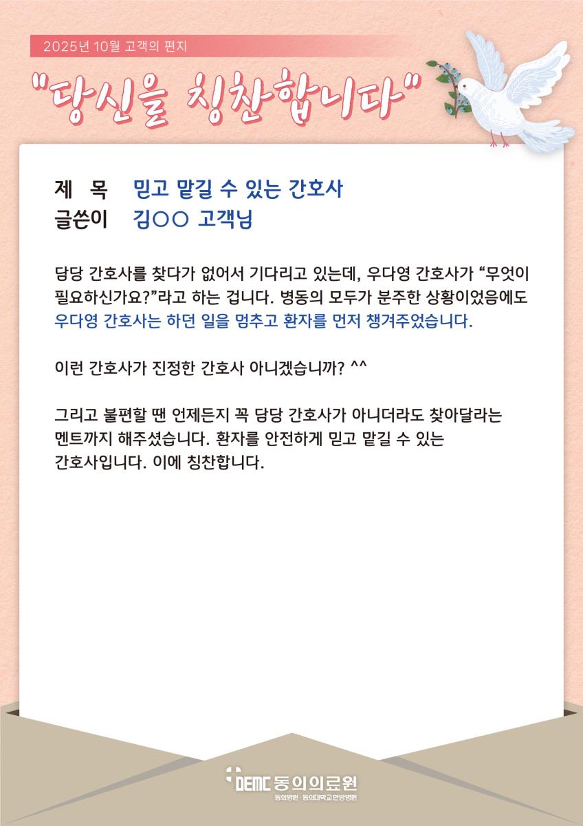 믿고 맡길 수 있는 우다영 간호사 선생님