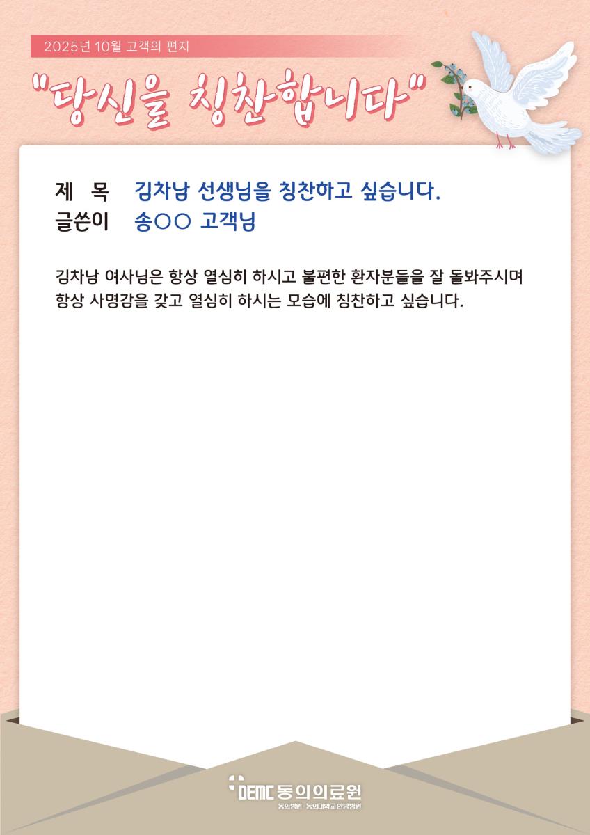 ※ 고객님의 치료후기 작성은 고객의 소리 메뉴에서 가능합니다.