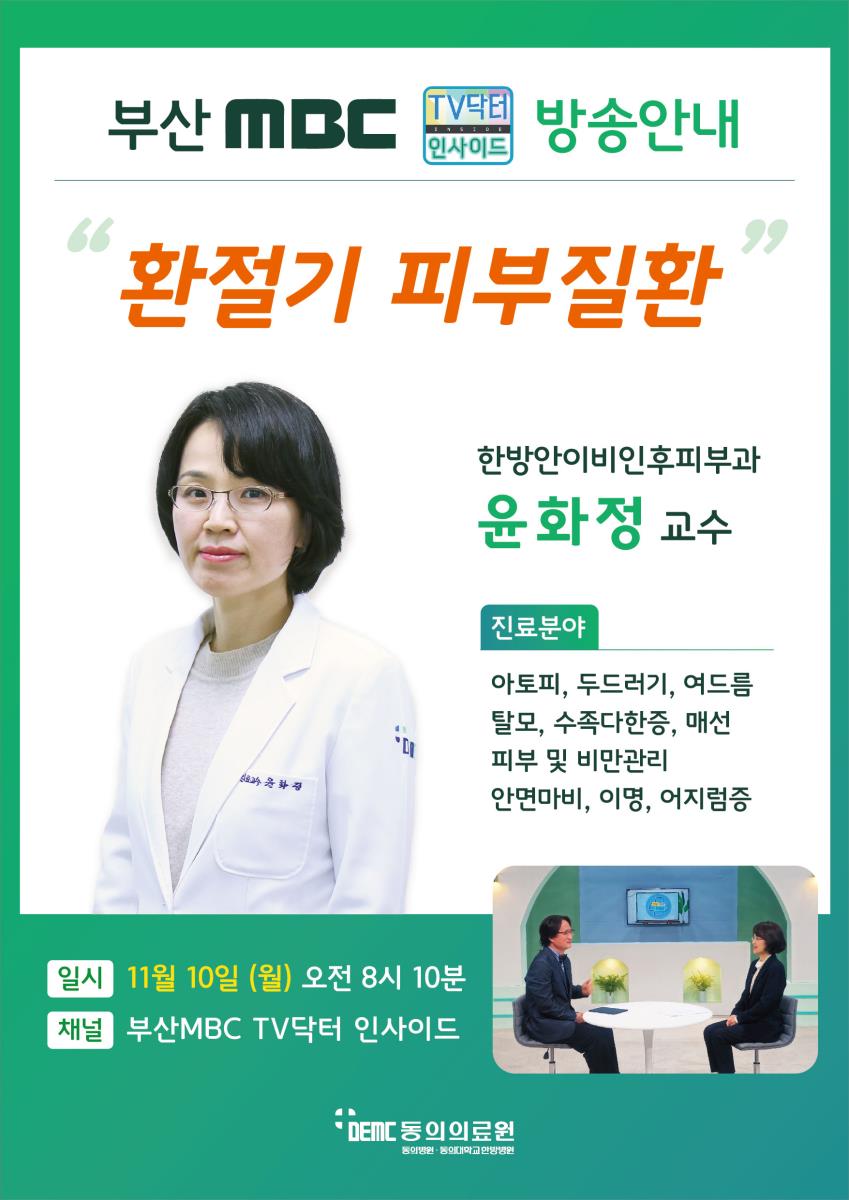 [방송] 부산MBC TV닥터인사이드 (11/10) - 환절기 피부질환 작성자관리자 작성일2025-11-03 조회80 다음글 [강좌] MBC 건강교실 (11/13) - 무릎 관절 통증의 단계별 치료