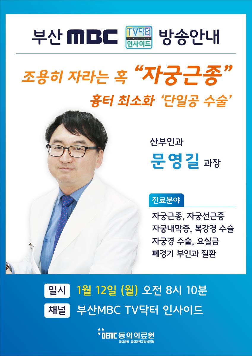 [방송] 부산MBC TV닥터인사이드 (1/12) - 자궁근종, 단일공 수술 작성자관리자 작성일2026-01-02 조회191 이전글 [강좌] 토요 한방교실 (1/17) - 냉증 & 염좌 다음글 [소식] [국제신문] 쉴틈없는 연말 감기몸살... 공진단 등 효과
