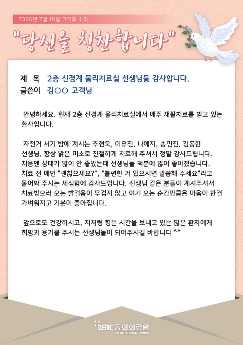 2층 신경계 물리치료실 선생님들 감사합니다.