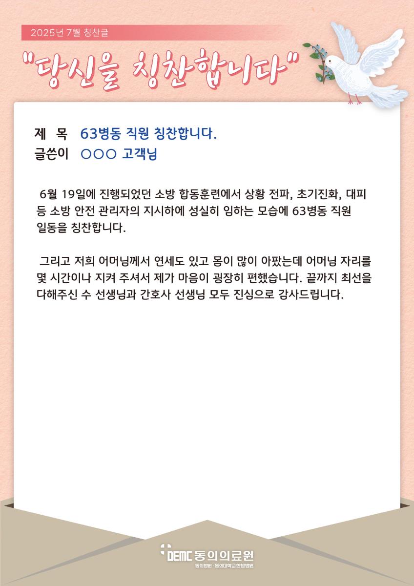 63병동 직원 칭찬합니다.